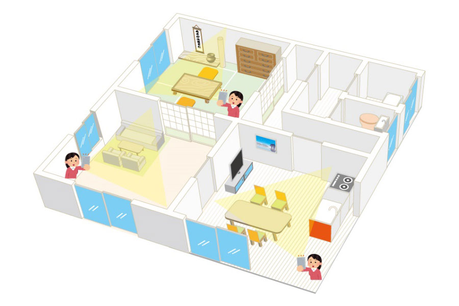 お風呂、トイレ、玄関以外の部屋全体が写るように各部屋1枚ずつ、撮影します。